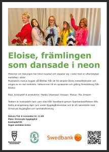 Barnteater ”Eloise-främlingen som dansar i neon”. En modern variant av Askungen med Melodiefestival-tema, där låtarna som ingår är barnens favoriter.